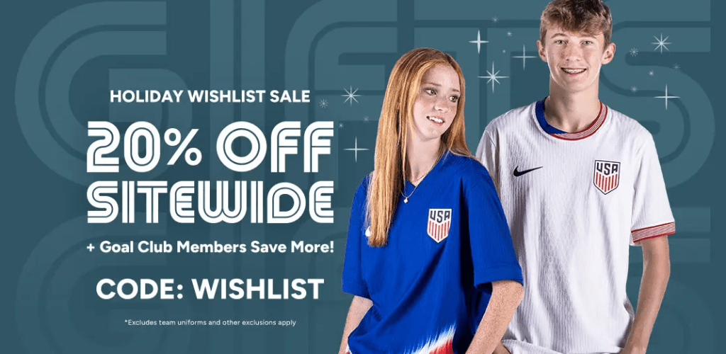 The Holiday Wishlist Sale at SOCCER.com is here! Get 20% OFF Sitewide + GOAL CLUB members save even more.