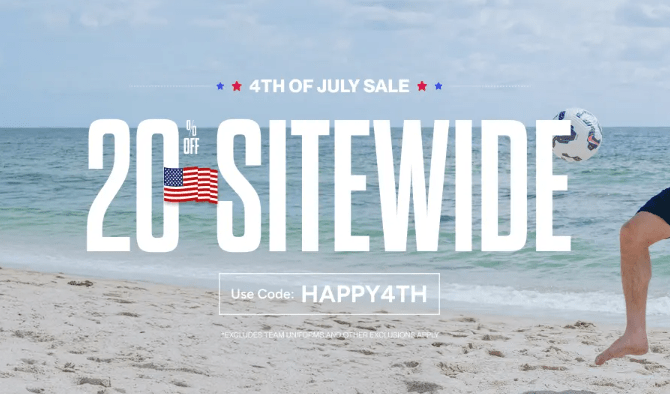 Visit SOCCER.COM to earn 20% OFF SITEWIDE this holiday weekend!